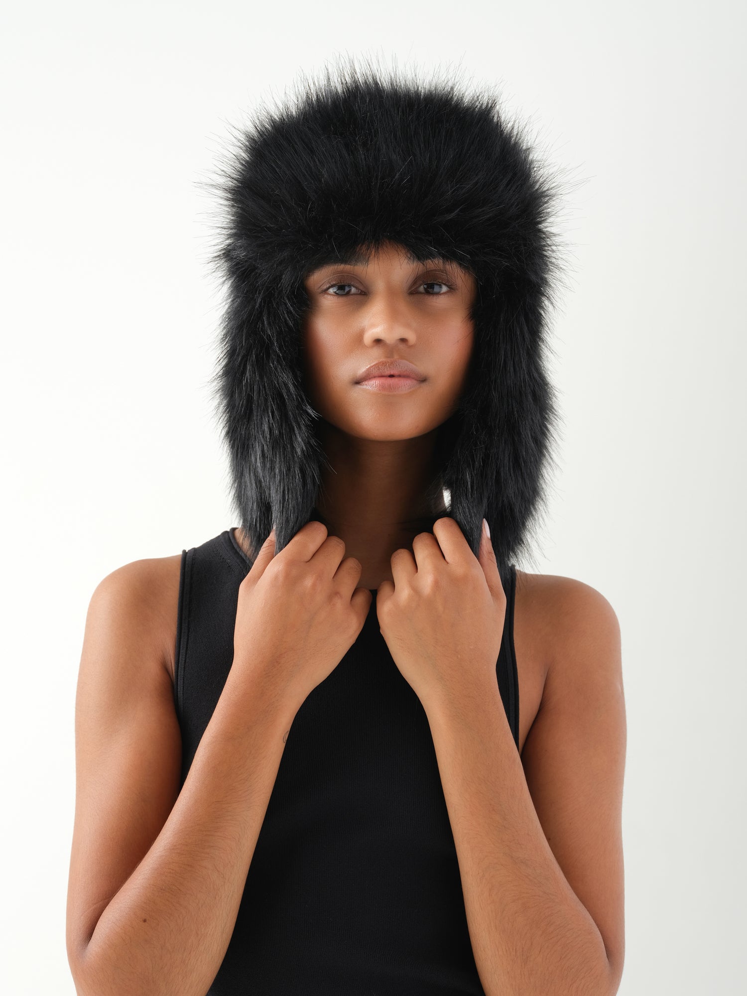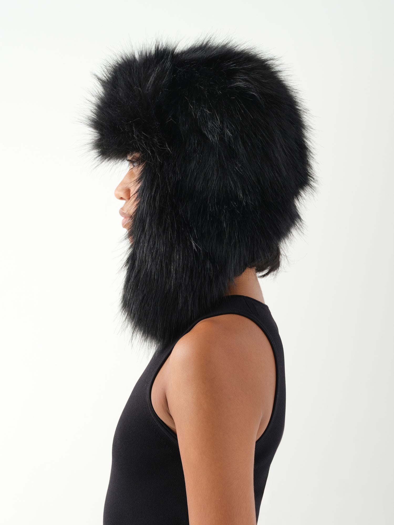 The Wright Hat in Black is a sculptural take on the classic trapper silhouette. Crafted from dense, short-pile faux fur with soft satin lining, this piece offers substantial warmth and modern edge. A functional cold-weather staple designed to elevate utilitarian styling.