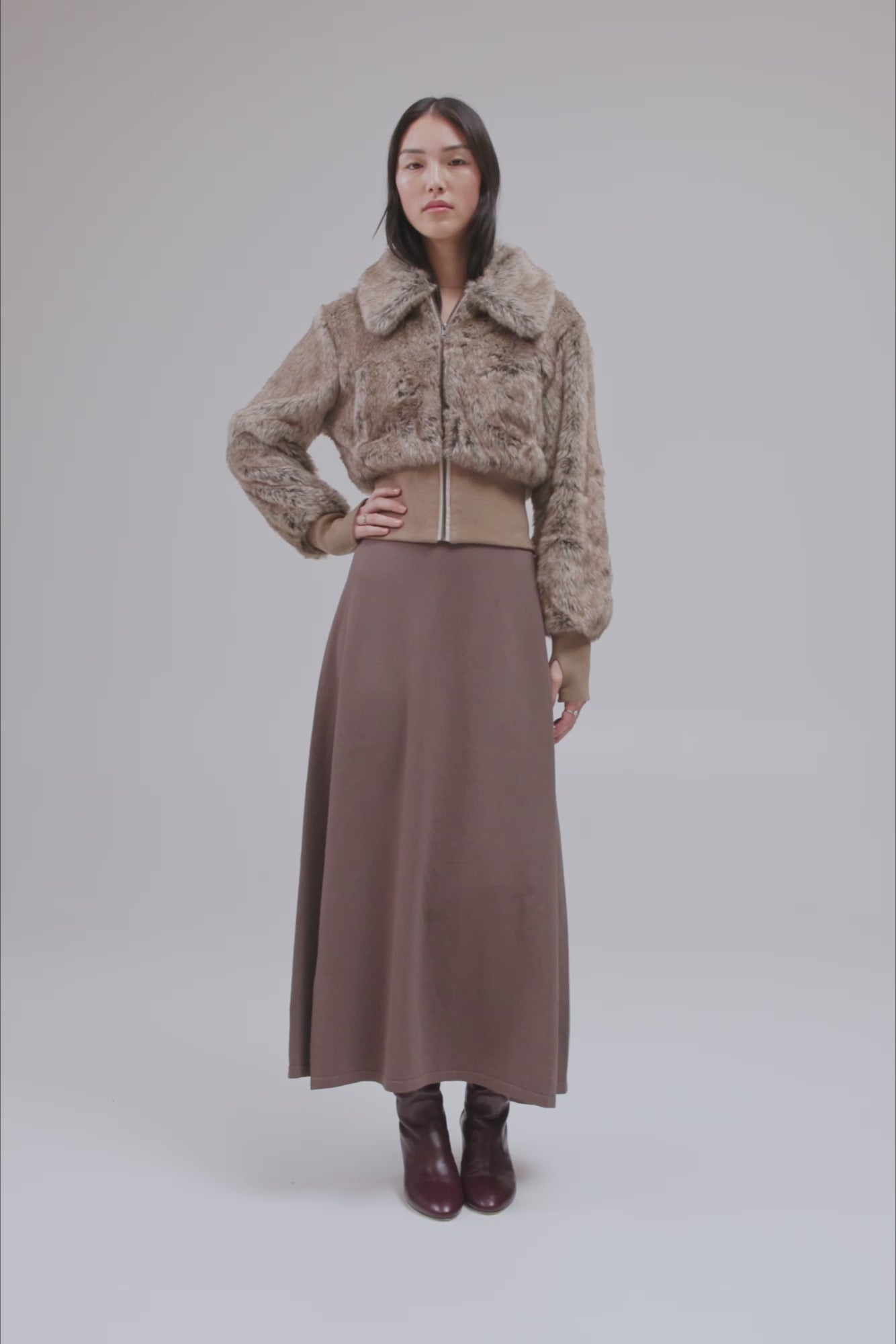 The Event Horizon Jacket is designed for bold functionality. Featuring short-pile faux fur, rib knit trims, and thumbhole cuffs, it marries practicality with a touch of avant-garde flair.