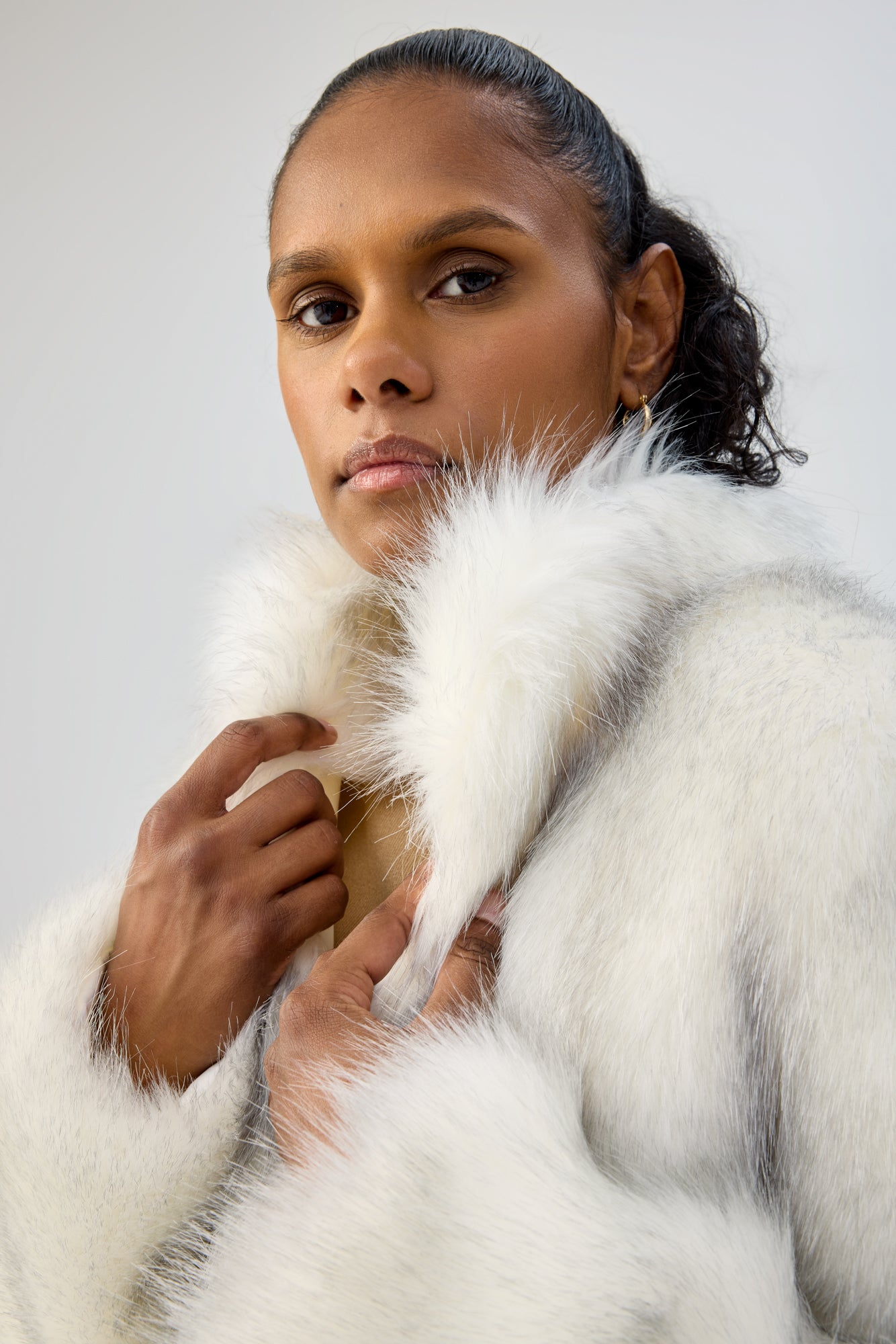– Plush multi-tone faux fur outer shell