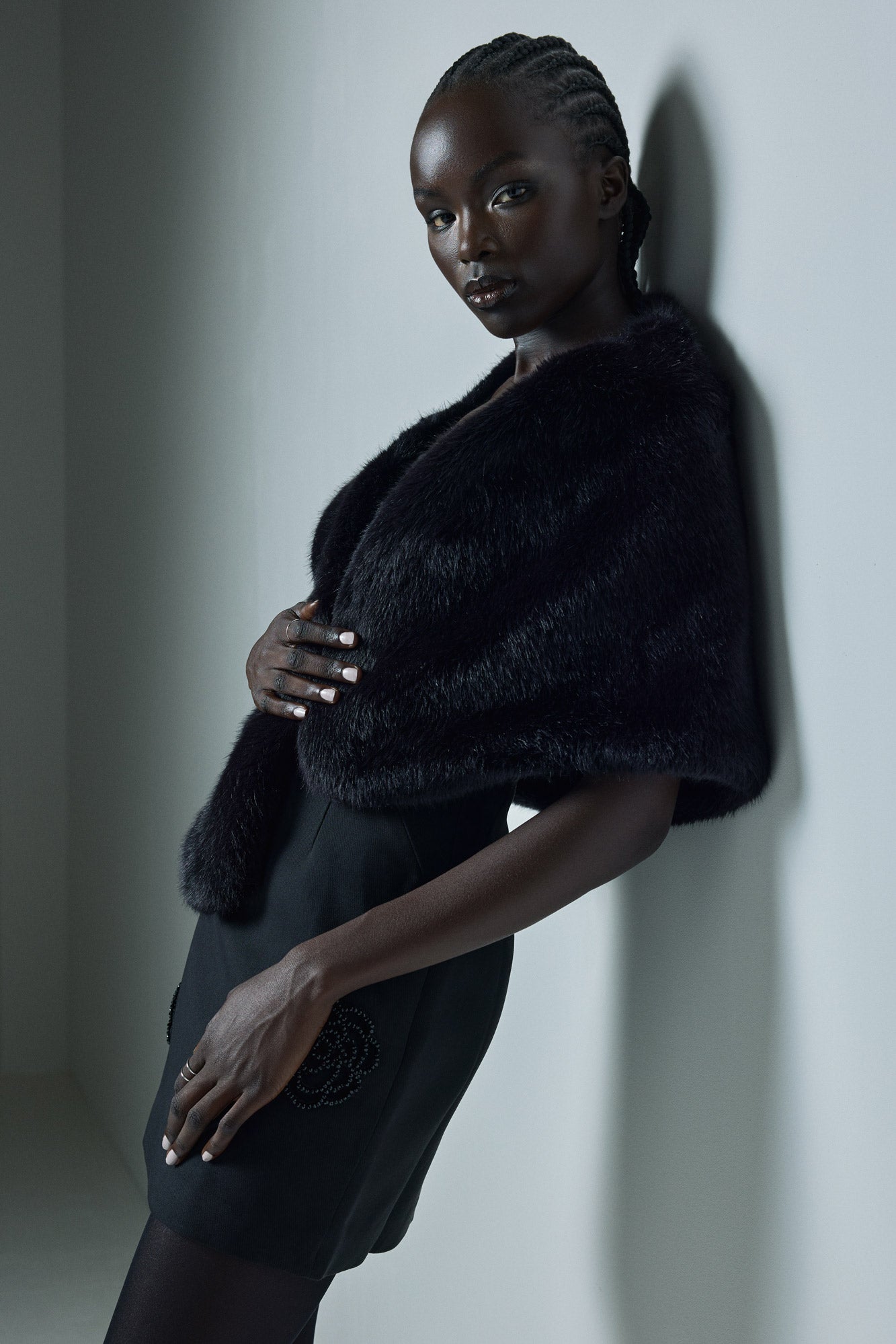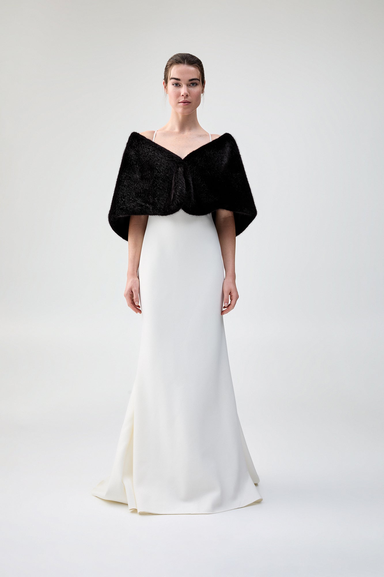 Simple and elegant, the Yasmine Wrap is a timeless piece to complement any gown or bridesmaid dress. This style features short-pile plush faux fur, interior satin lining, and a hook closure for an effortless wear throughout the day and evening.