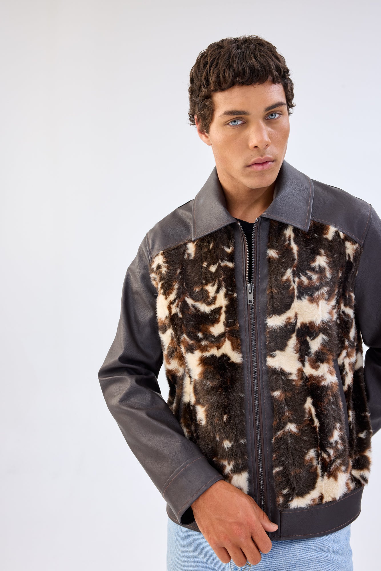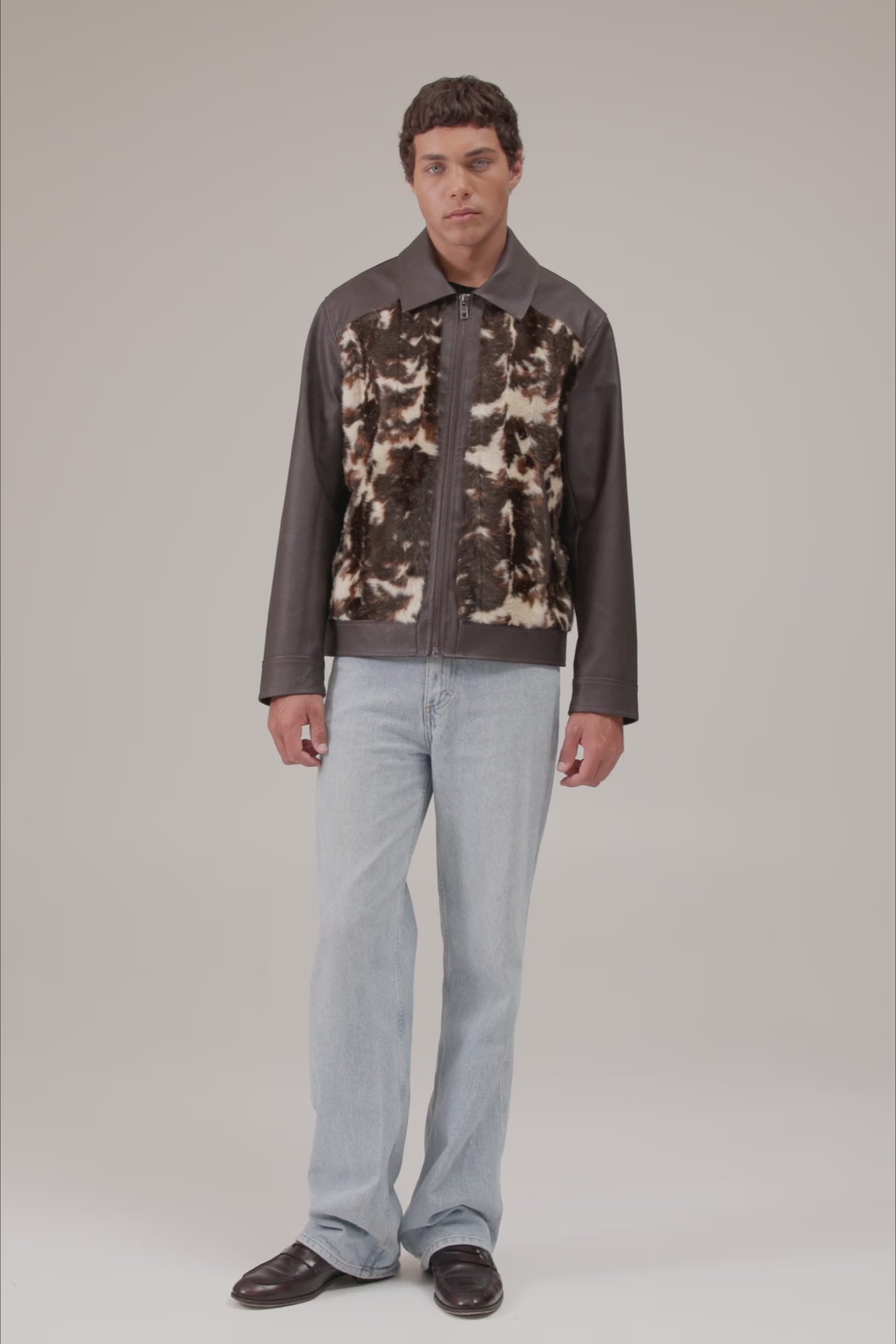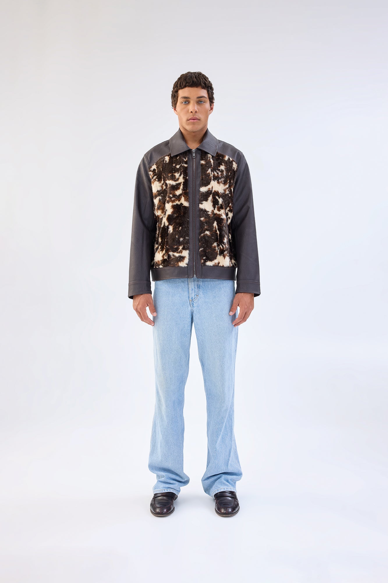 The Yellowstone Jacket combines functionality with standout style. Designed with a gunmetal zipper and fully lined interior, this hip-length piece delivers a sharp silhouette and tailored fit. The central detail being the mock cow-print faux fur outer body.