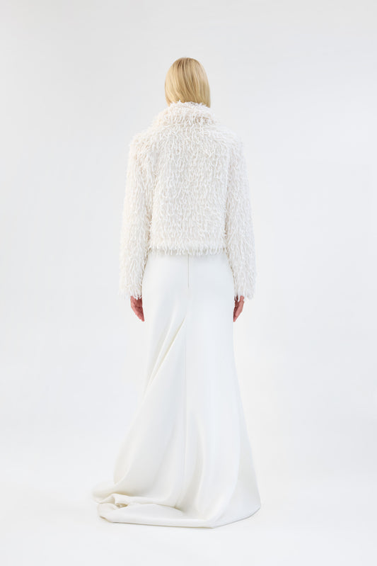 Unstructured shapes and fluid finishes lend themselves to relaxed ceremonies or nature-based venues. These wedding jackets are crafted to move easily, bringing ease and softness to bridal and guest looks.