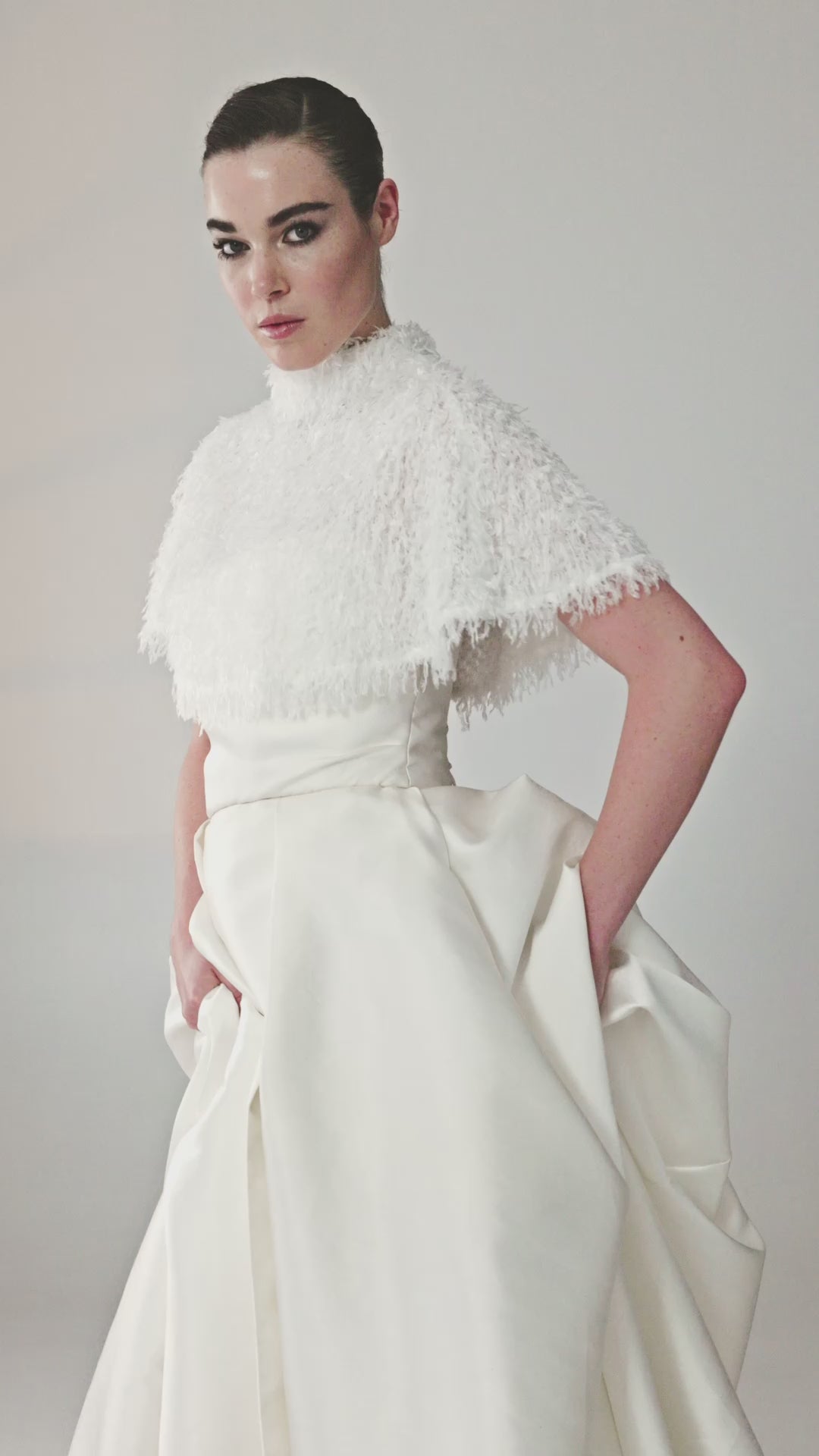 The Cape Verde is a timeless and versatile accessory to be worn as a finishing touch to an evening or a bridal gown.